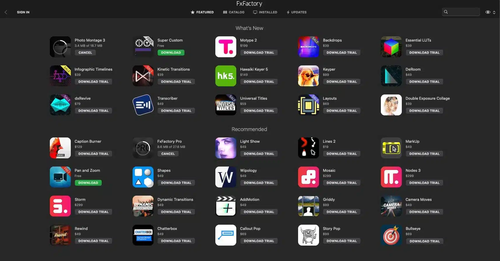 FxFactory v8.0.21 全功能版里面所有插件均可在在线下载后自动注册激活成功,然后打开AE/PR/达芬奇/FCPX等软件即可直接使用。在FxFactory 里也可以直接查看插件介绍和官方提供的视频教程。