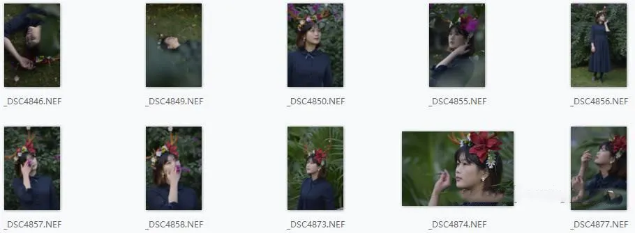 本RAW原片素材是关于10张美女森林系外拍人像写真摄影原片RAW原片素材,文件大小:357 MB,原片格式:NEF,原片张数:10张(无水印)。