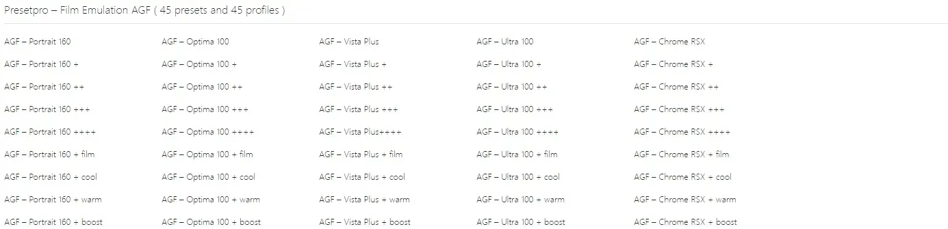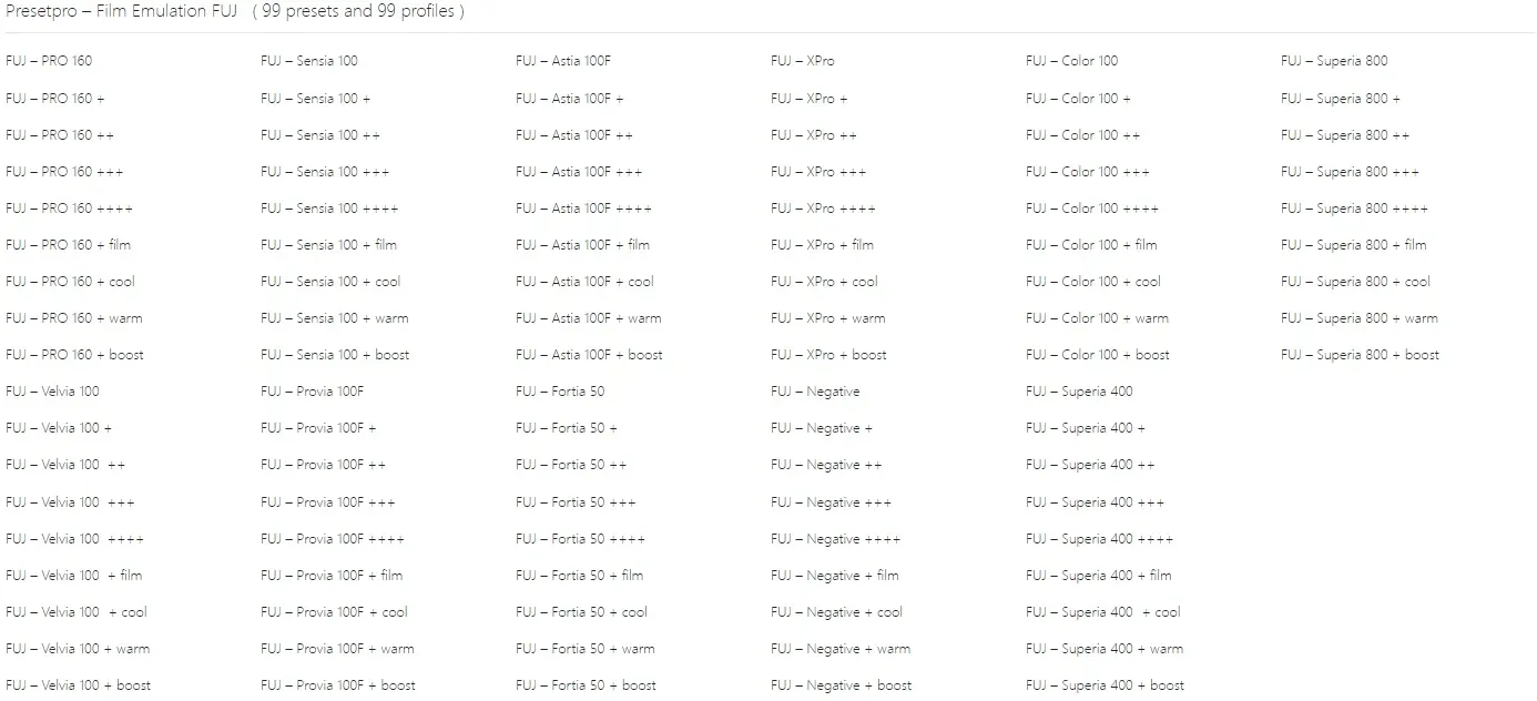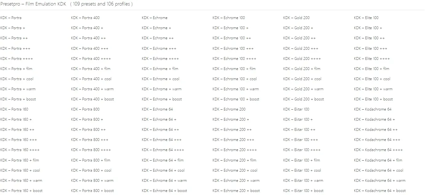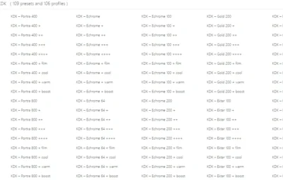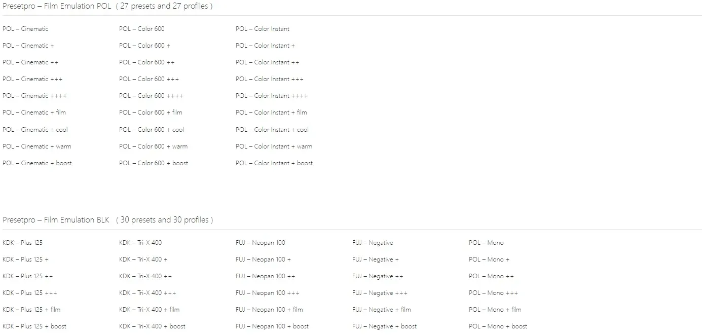 Presetpro 胶片模拟系列包括300 个胶片预设和 300 个配置文件。