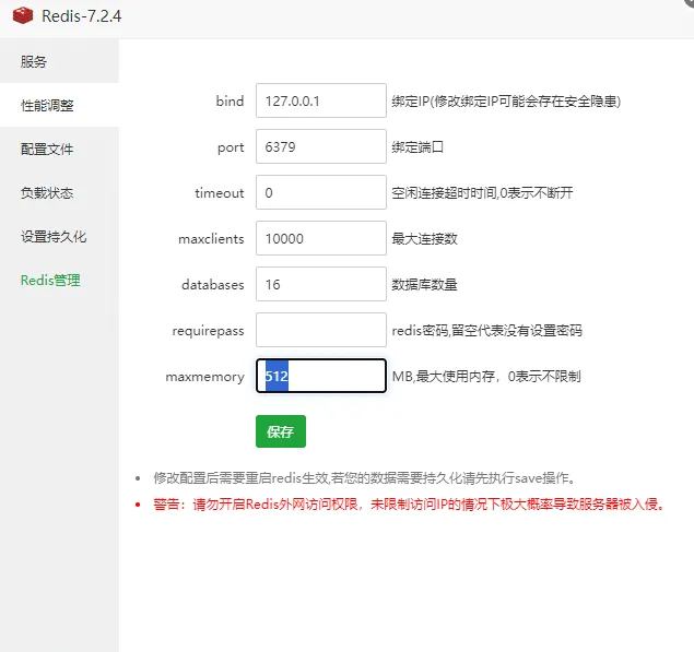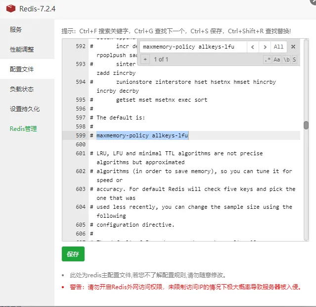 maxmemory 512mb (内存4G设置512M,根据自己的内存设置)