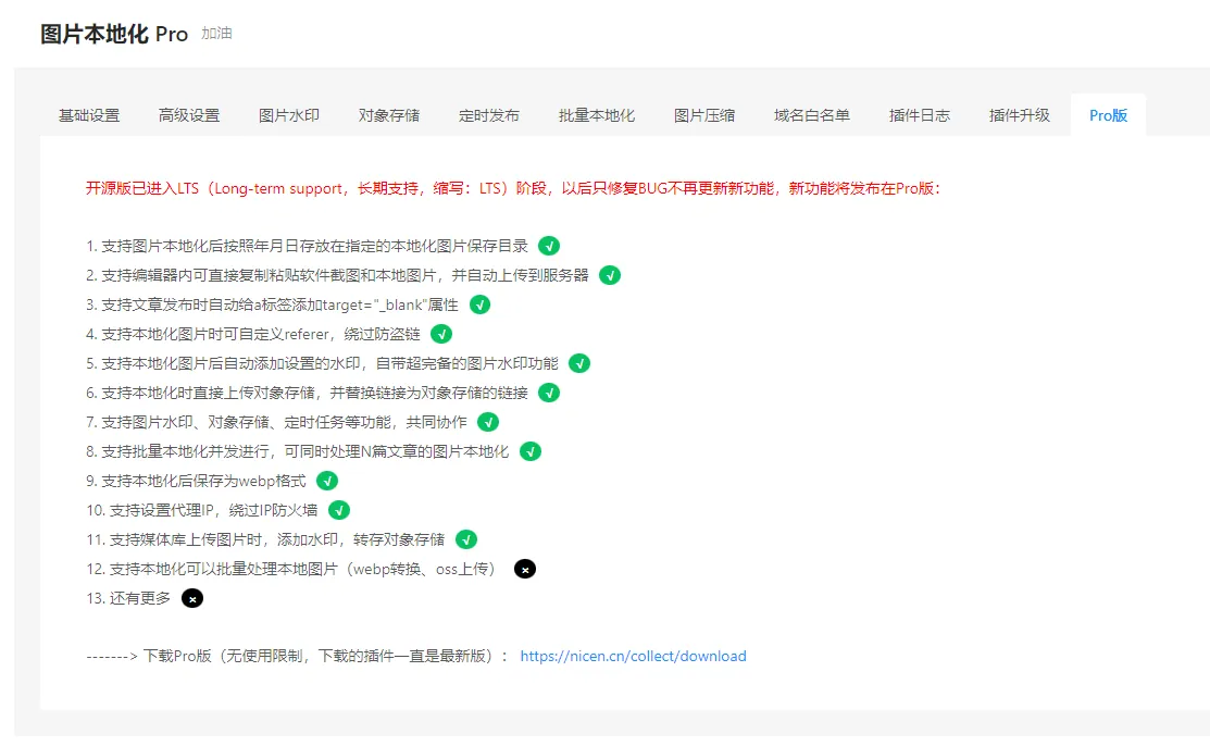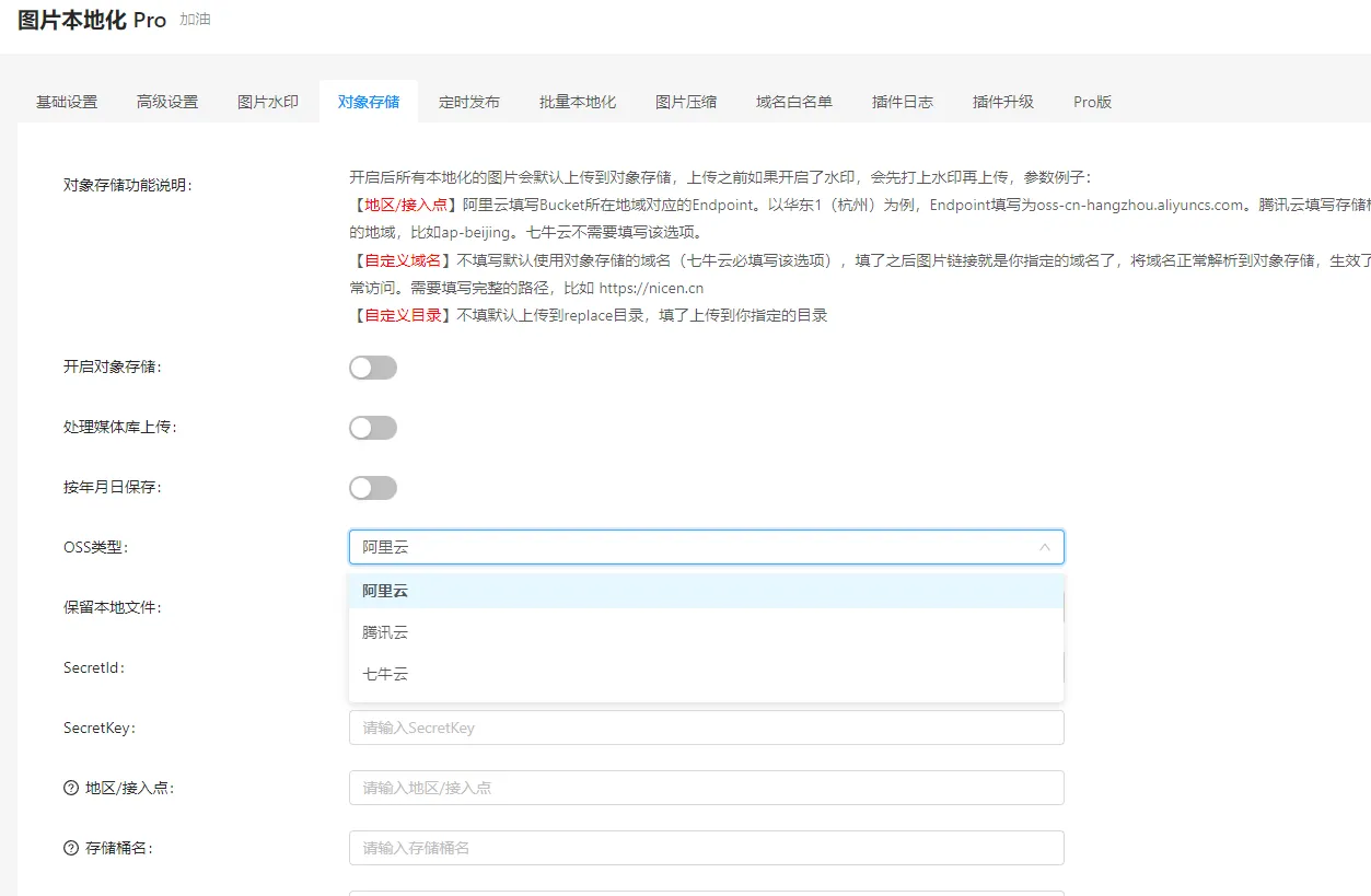 nicen localize image PRO v3.0.1版是一款外链图片本地化插件。该插件支持阿里云和腾讯云对象存储,可以在发布文章时自动本地化外部图片,还提供了添加水印和上传对象存储的功能,同时支持在媒体库中选择对象存储的图片。插件提供了两种本地化外部图片的模式,可以同时开启,推荐在发布前使用编辑器本地化插件进行本地化。