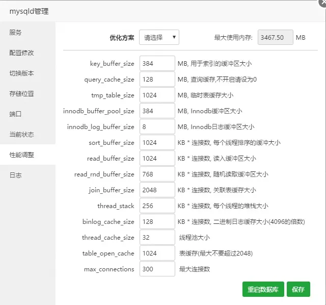 今天我们主要谈谈如果配合宝塔面板的新功能来进行MySQL配置参数调优,我们先来看两张图片: