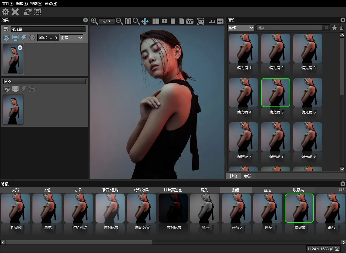 - General 综合插件:光学玻璃相机滤光镜、专业镜头、电影胶片、镜头光晕、光学实验室过程、纹理、严格的色彩校正以及自然光和摄影效果的模拟。125个插件过滤器,数以千计的定制预置。