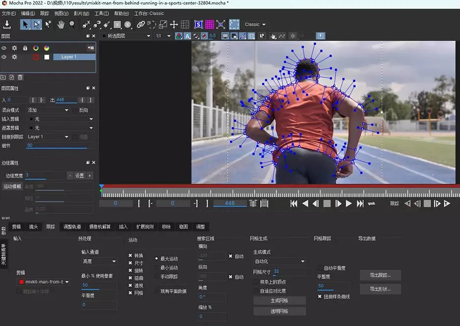 Mocha Pro 是一款世界知名的VFX视觉特效和后期制作强大的平面跟踪软件工具,用于平面运动跟踪、rotoscoping、物体移除、图像稳定和新的 PowerMesh 跟踪。对于视觉效果和后期制作来说,Mocha 的工具在最近获得奥斯卡最佳视觉效果提名的每一部影片中都发挥了至关重要的作用。Mocha Pro 2022具有GPU加速的跟踪和对象去除功能,具有边缘捕捉功能的高级遮罩,稳定功能,镜头校准,3D摄像头求解器,立体360/VR支持等。