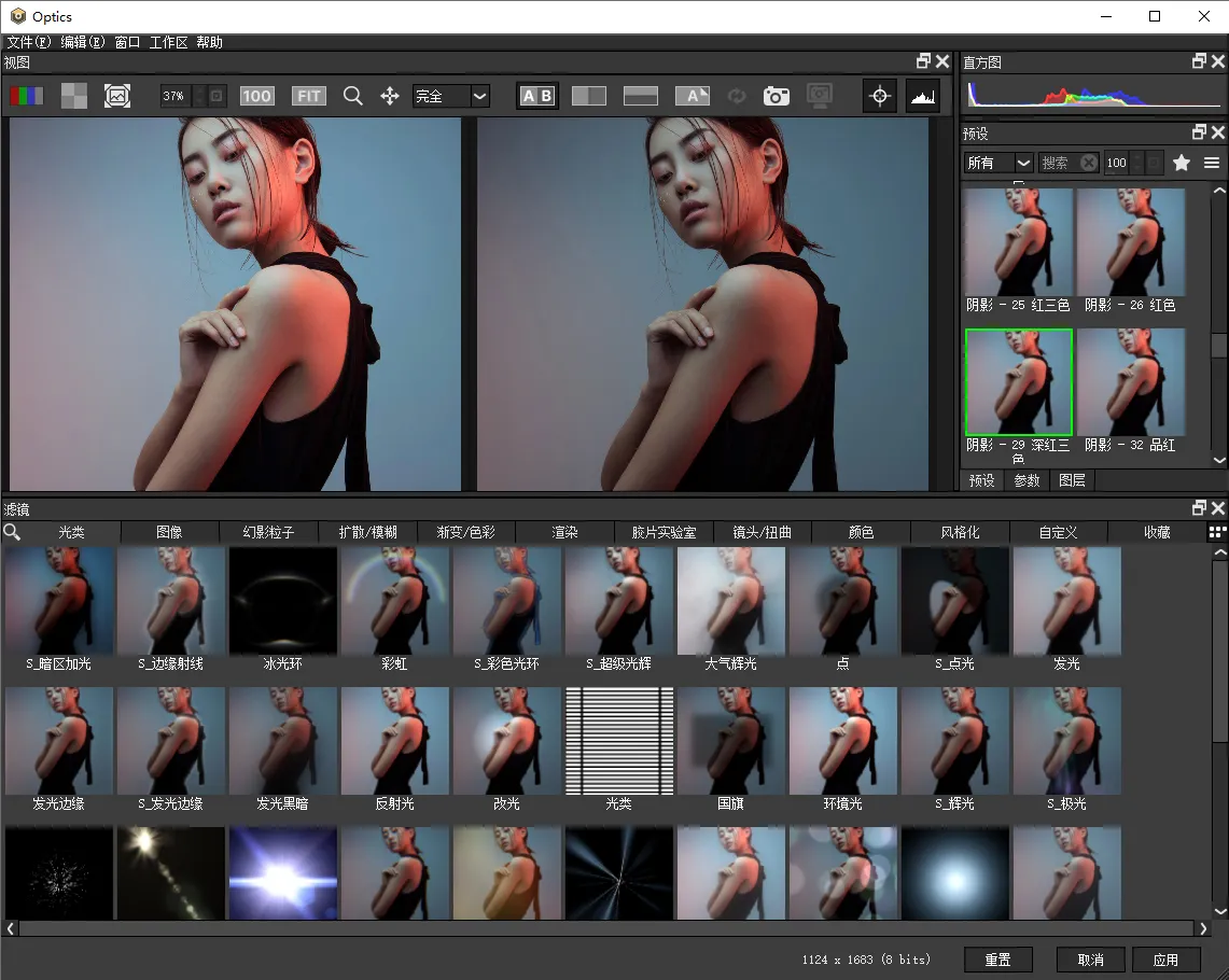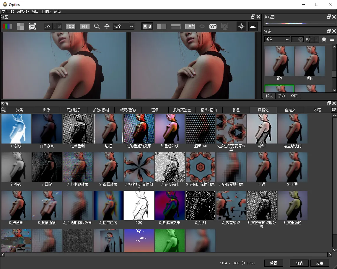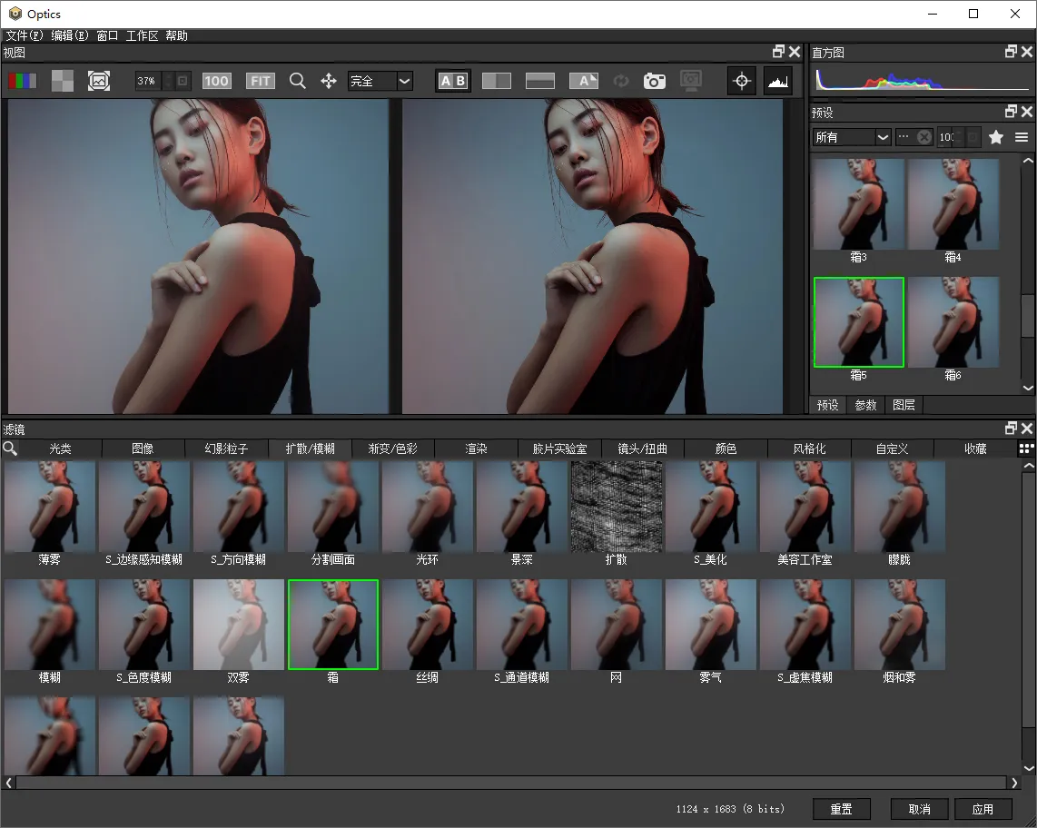 物理相机质量:无论是历史胶片、颜色分级,还是镜头和扩散效果,Optics 都是唯一一款旨在模拟光学相机滤镜物理特性的 Photoshop 滤镜。使用 Mist、Fog、Net、Halo 等扩散滤镜为您的数字图像添加美感和深度。新的美容工作室过滤器简化了细微皮肤修饰的细节分离技术!