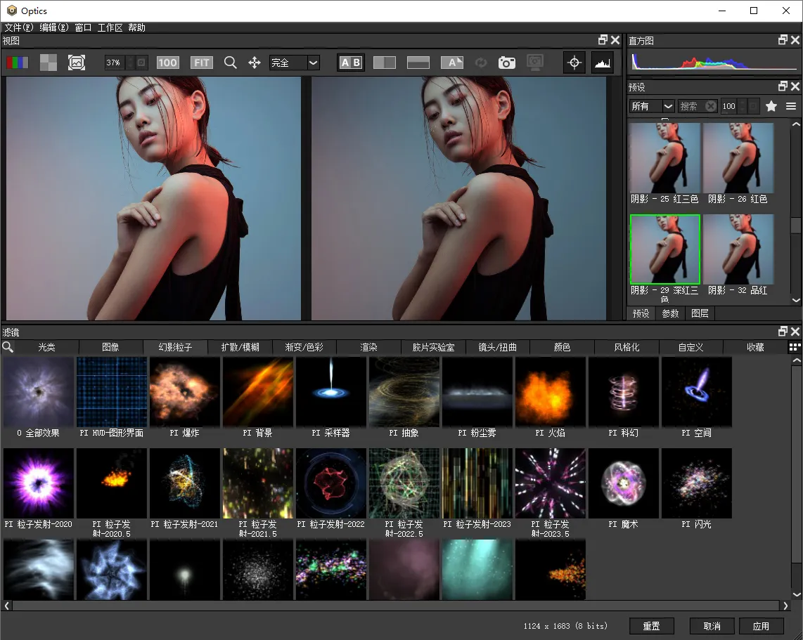 Optics 现在包括粒子错觉类别。一个快速且易于使用的粒子引擎,旨在创建照片级效果和无限的创意元素。拥有 1700 多种粒子预设来增强您的照片编辑效果,包括:烟雾、火、水、火花、爆炸、灰尘、科幻等等。无限创意。如需完全控制,请启动 Particle Illusion 界面来设计自定义发射器或访问诸如力、偏转器和流体动力学等高级功能。Optics 具有强大的基于图层的合成界面和强大灵活的遮罩工具,可用于简单的照片编辑、完整的图像处理或设计和生成创意资产和图形。只需单击一下即可添加灯光效果,或组合无限的蒙版和滤镜来设计自己的外观。
