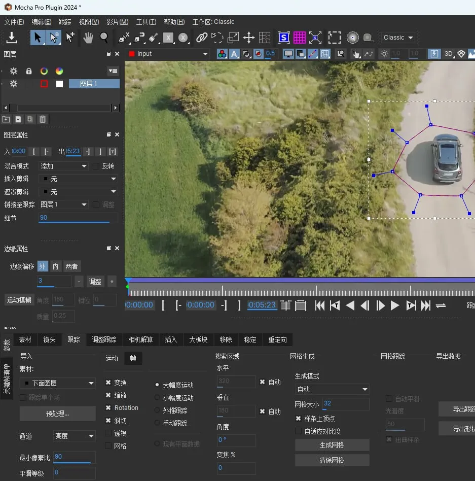 - 使用 Mocha 跟踪进行 3D 求解:可选择使用 Mocha 平面跟踪和 PowerMesh 来协助解决困难问题