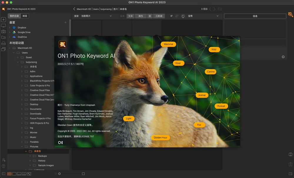 提升照片管理:通过 XMP 自动将关键字和元数据嵌入到照片中,以便与 Adobe Lightroom Classic 或 Capture One 等应用程序兼容。闪电般的浏览器,用于快速查看、组织和剔除照片。完整的元数据支持,包括嵌套关键字、描述以及完整的 EXIF、IPTC 和 XMP 兼容性。