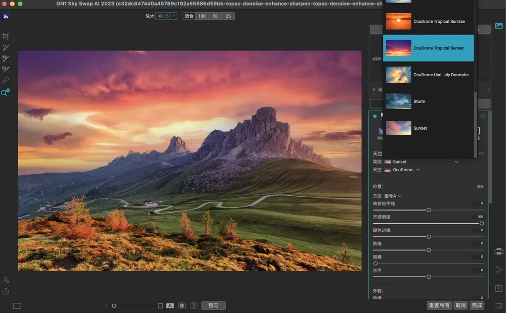 轻松调整:ON1 Sky Swap AI 生成的蒙版可以轻松调整,让您融入现有天空或完全替换它。