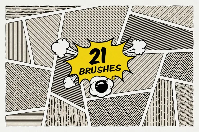 21支复古线条阴影手绘漫画Procreate笔刷 Vintage Comics: Line Procreate Brushes