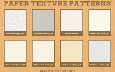 40 幅 Procreate 画布,包括彩色纸、牛皮纸、平纹纸、凸版纸、羊皮纸、斑点纸和水彩纸。