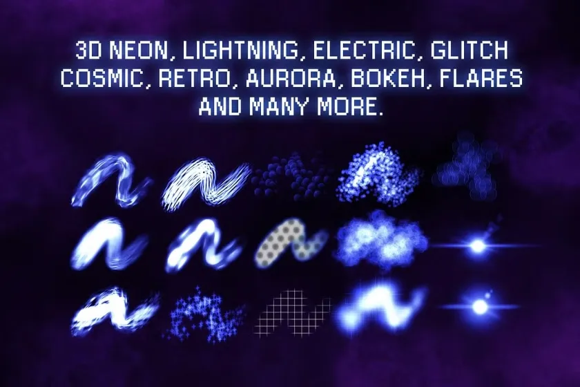30组Procreate赛博朋克霓虹文本发光画笔笔刷 30+ Procreate Glow Brushes