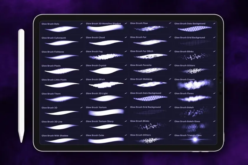 30+发光的Procreate笔刷,这些画笔适用于iOS APP Procreate。无论是初学者还是专业人士,夜光刷都易于使用。发光笔可用于刻字,数字绘画,照片编辑等。