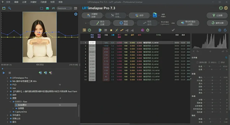 LRTimelapse Pro v7.3.0是专业的延时摄影编辑和创建工具,配合使用 Adobe CameraRAW、Adobe Lightroom 和 Adobe After Effects 等实现平衡曝光不一致(去除闪烁等现象)、关键帧参数自动过渡功能。