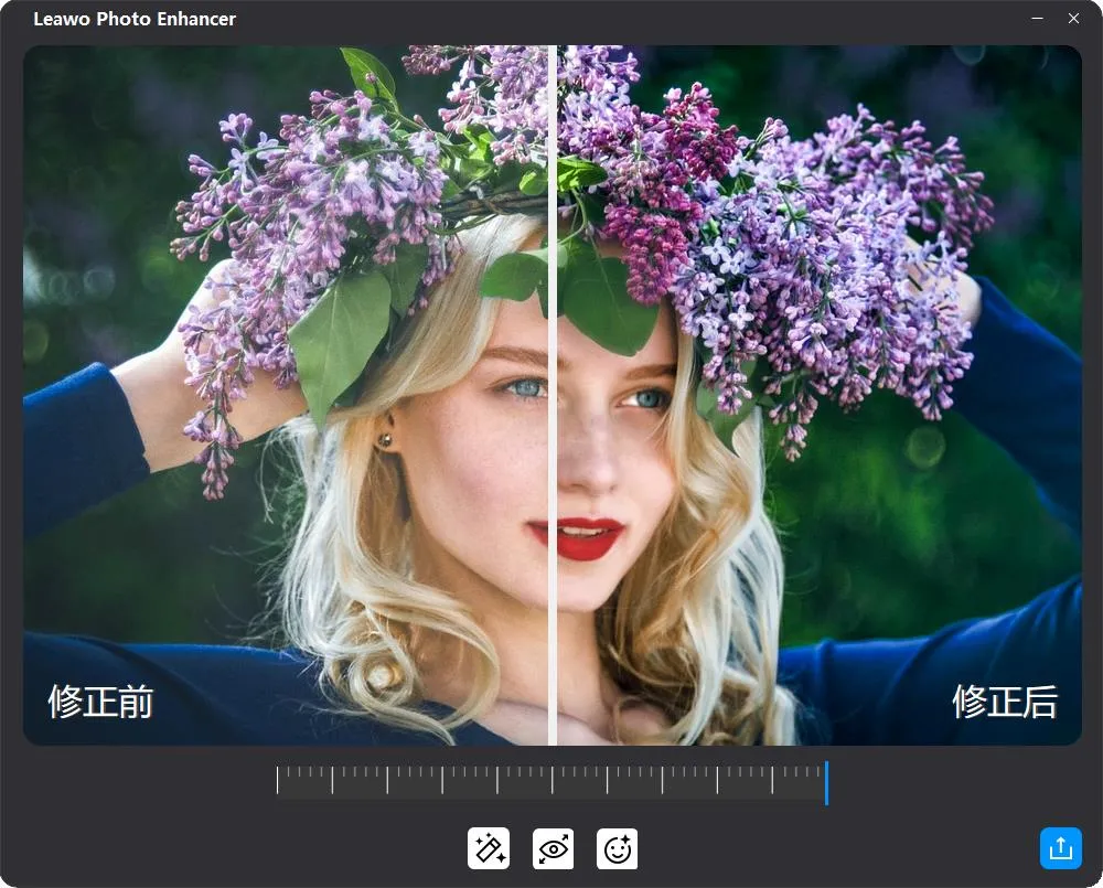- Photo Enlarger:高达 40 倍画质无损照片放大,照片噪点、清晰度和效果可调。Leawo PhotoIns 配备照片放大模块,可智能地将图像放大高达 40 倍。Leawo PhotoIns 并非仅进行像素放大,而是通过提升图像分辨率和色彩渲染、减少伪影并增强细节纹理来放大照片。它还可以去除噪点和雾气,修复像素化、颗粒感和模糊的图像,并通过调整饱和度、对比度和亮度来优化图像效果。