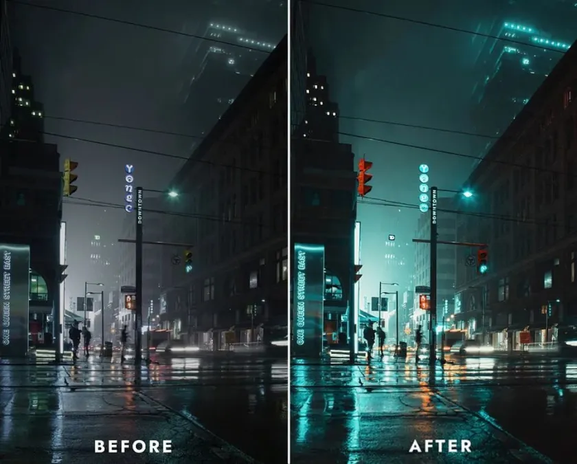 根据您的相机设置以及照明条件以及白平衡设置、主色等。您可能需要调整预设中的设置以确保您的照片看起来完美。这就是为什么NIGHT CITY 预设的各种变体旨在确保您只需单击一下即可通过照片的不同设置获得所需的结果!