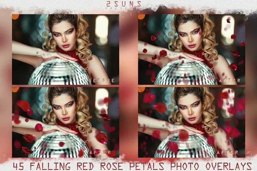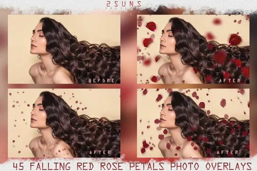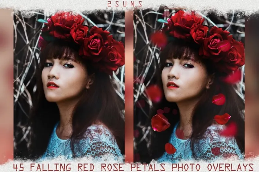 高清玫瑰花瓣PS后期叠加合成前景素材 Falling Rose Petals Photo Overlays