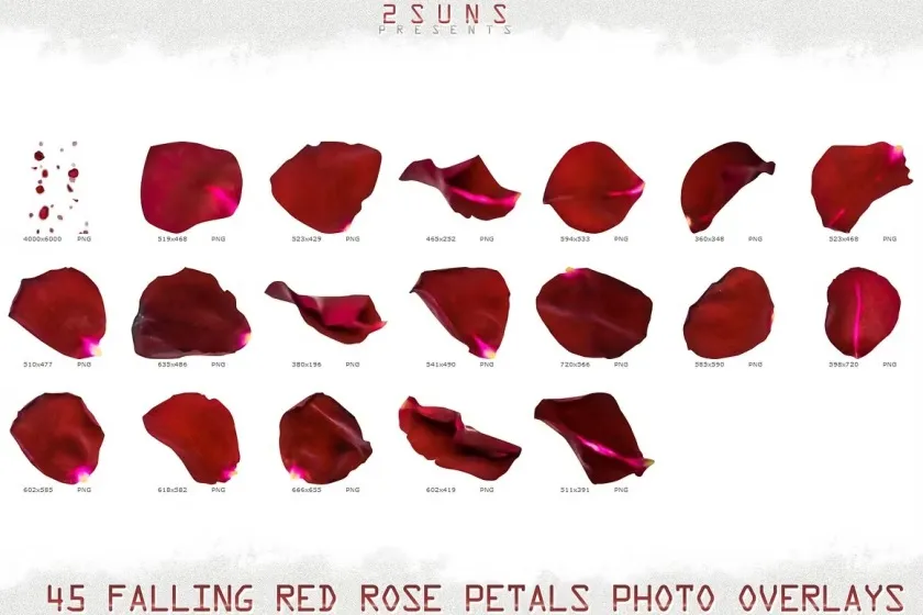 25 PNG Falling Red Rose photo overlays with transparent background.