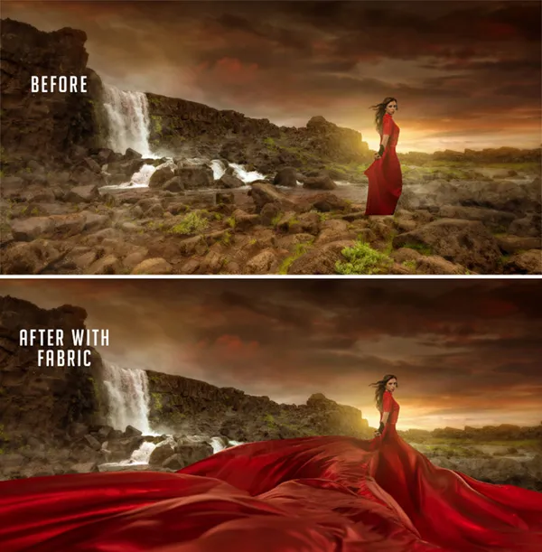 375款国外婚纱大片裙摆拖尾丝绸飘纱合成PSD素材 Frievalt Flying Fabric Overlays 附全套教程