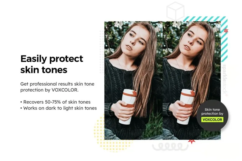 ✔️ 使用 VOXCOLOR 的肤色保护算法获得自然效果。