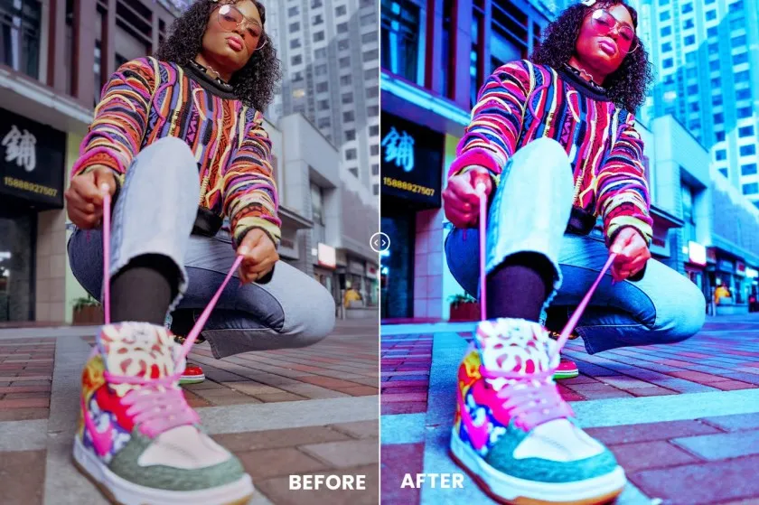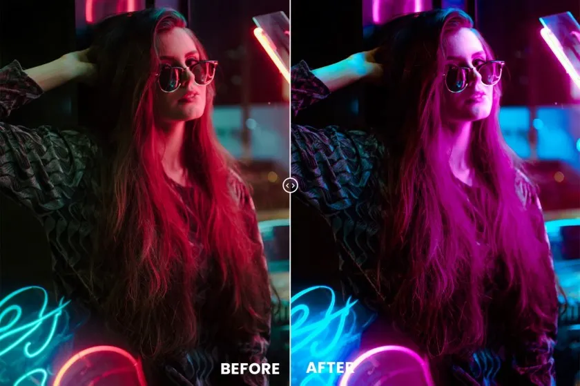 这款时尚霓虹灯动作和 Lightrom 预设旨在创造一种引人注目的锐利外观,从其他方面脱颖而出,创造独特的流畅风格,专注于不同的色调。