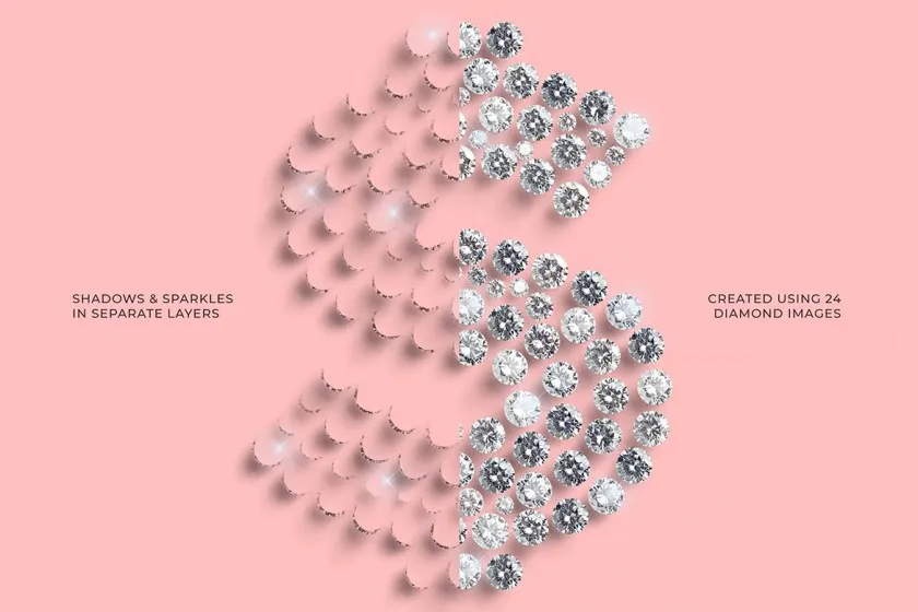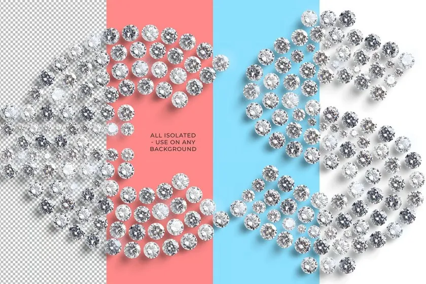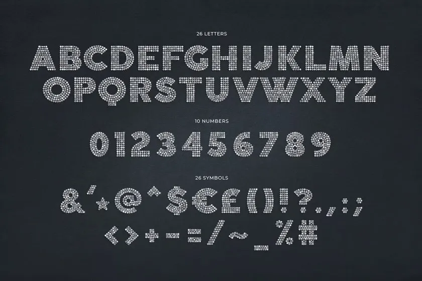 26 个光学捕获的钻石字母、10 个数字和 26 个符号的集合,可帮助您为广告、传单、海报、传单、横幅、广告牌、网站、登录页面、英雄图像等创建很酷的标题。