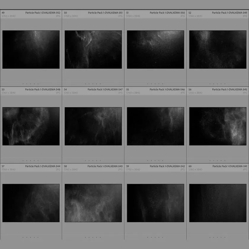 叠加层都是在黑色上创建和拍摄的,让您在混合模式下进行终极控制,将它们无缝地添加到您的编辑软件中的图像中。Particle Pack Overlays 具有独特的 Photoshop 叠加 FX,因此您在编辑时有更多选择。在最长的边缘以 5,760 像素分辨率交付。