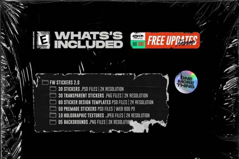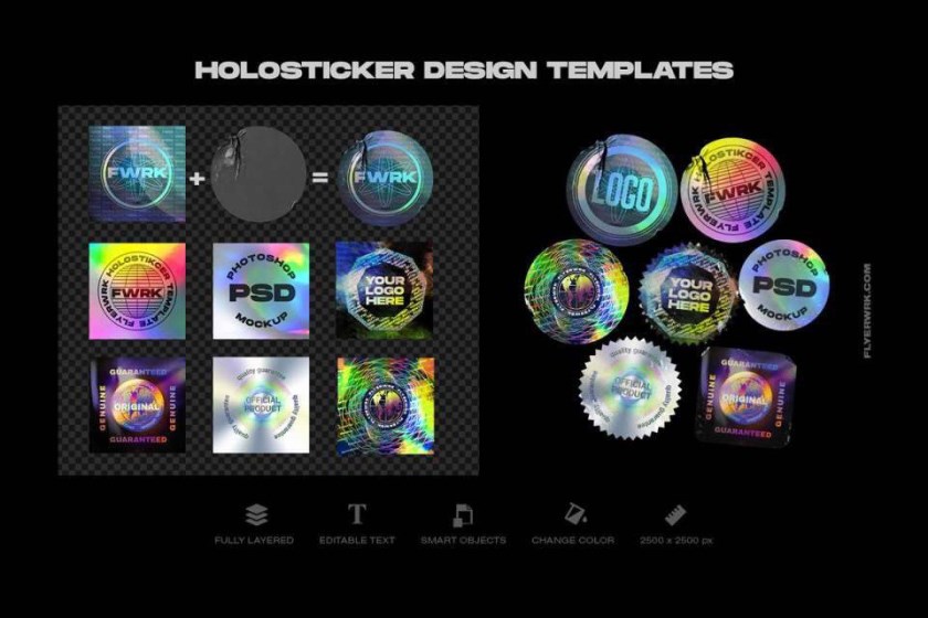 每个贴纸以前都带有 3 个预制设计,为了更加灵活,我们现在将所有设计打包在一个单独的文件夹中。现在您可以选择 80 多个贴纸模板,包括新的全息设计。