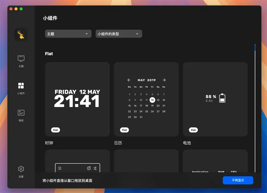 - 多样化的样式主题 Widgetter 提供了多种小部件主题样式,支持不同风格的选择,使得桌面外观更加契合用户的喜好。
