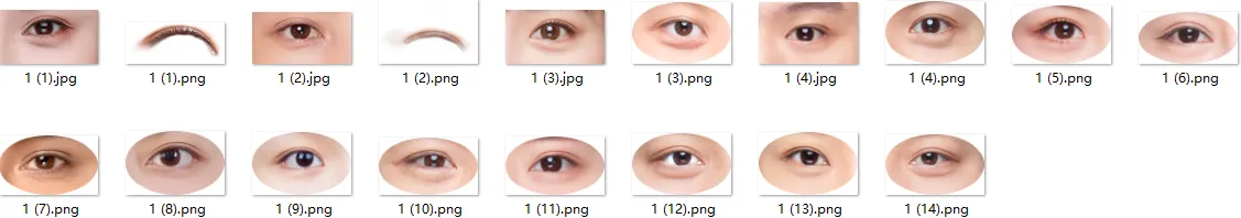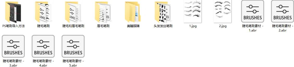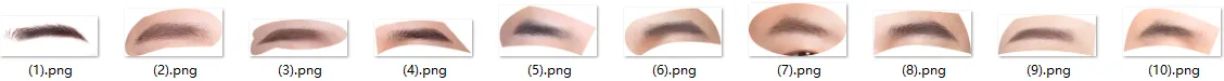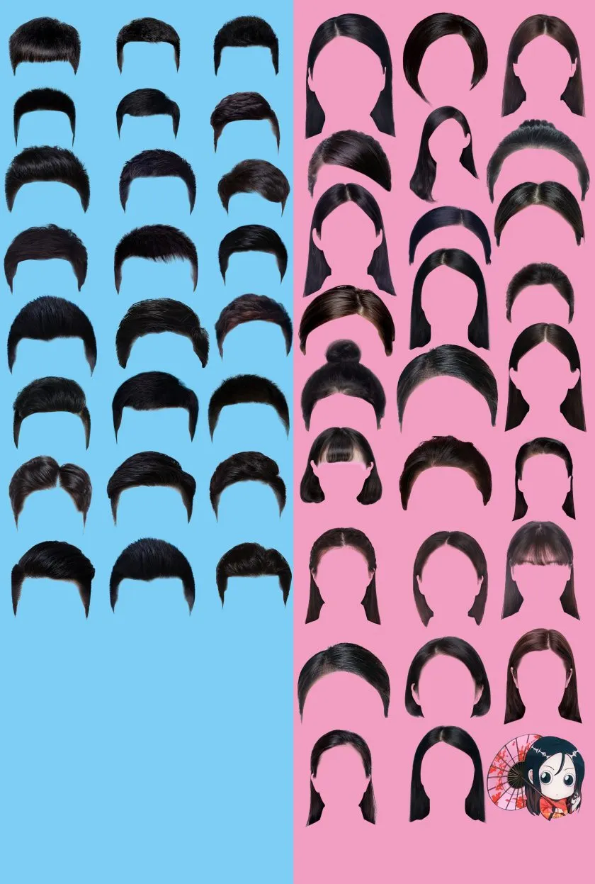 证件照修饰素材-发型62款(大人和儿童)+ 男女五官素材110款(头发、眉毛、睫毛、鼻子、嘴巴、牙齿、脖子、双眼皮)+五官PS笔刷