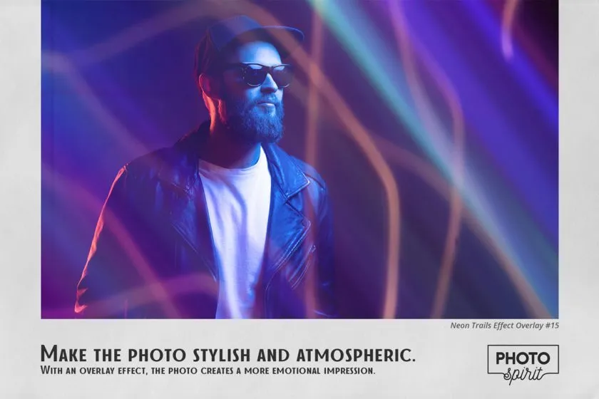 适合业余爱好者和专业人士。在彩色和黑白照片上效果极佳。为了您的方便,在屏幕模式下添加了用于选择和覆盖叠加层的操作。这将适用于 Photoshop 和 Photoshop Elements。Neon Trails Overlays 可用于任何图形编辑器,它支持滤色模式下的图层叠加。