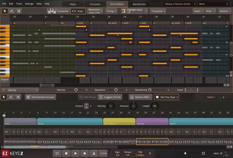 内置和弦库和自动和弦识别功能,用户可以快速生成和弦进程,支持多种音乐风格。 -