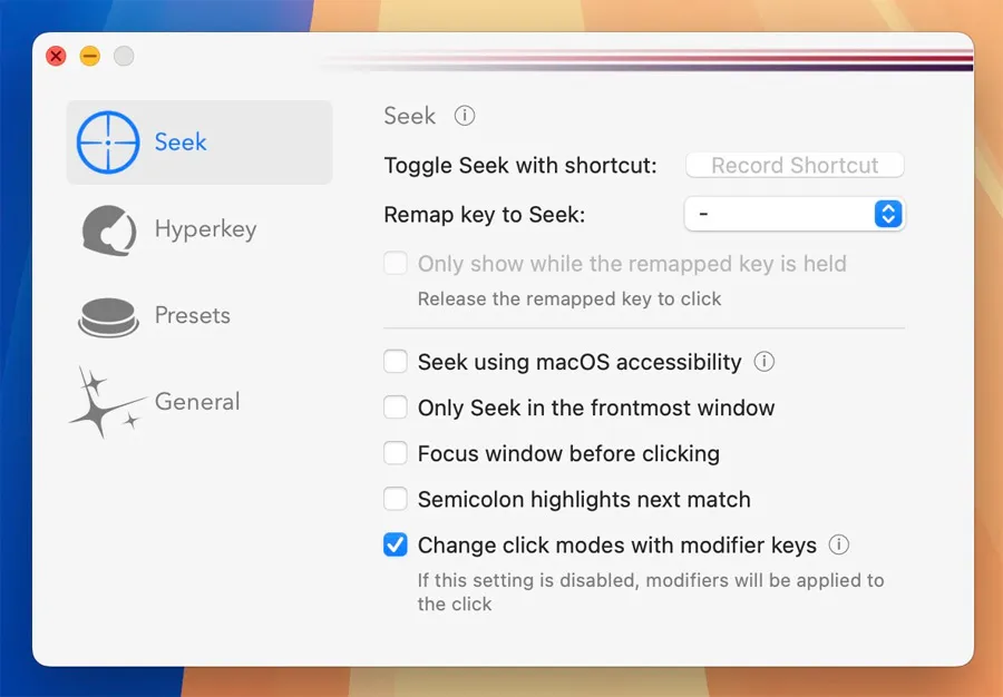 支持将任意按键组合映射为系统动作(如截图、聚焦窗口、唤出工具栏等),也可绑定 AppleScript、Shell 脚本或第三方命令。 -
