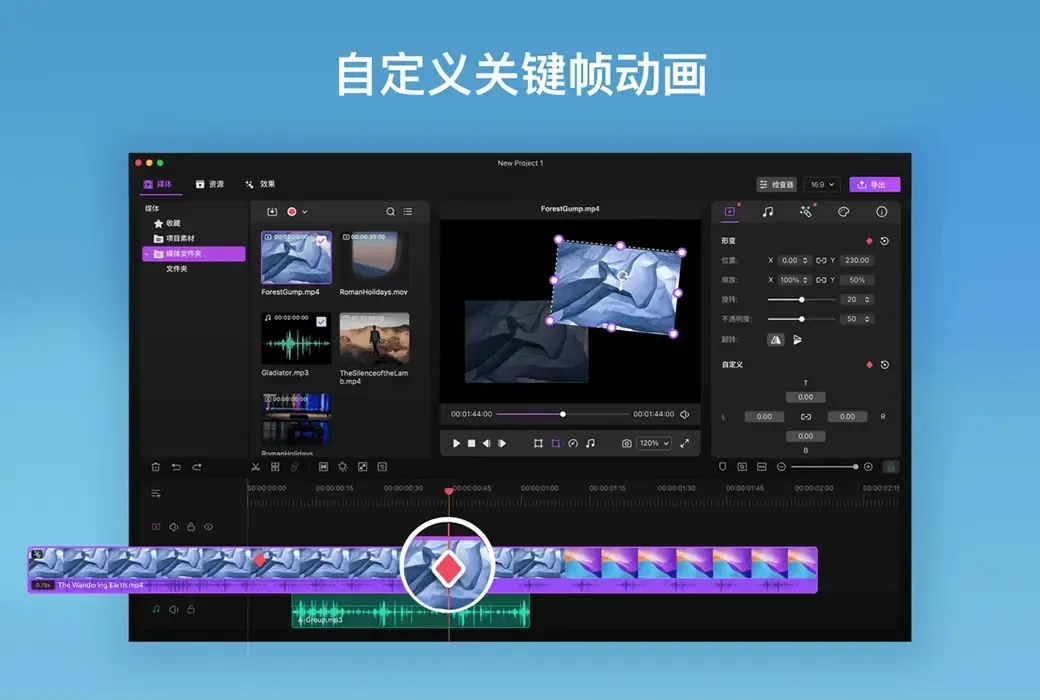 Filmage Editor是一款强大专业的音视频编辑软件,功能丰富操作简便,让你轻松制作微课、vlog等视频!更支持自定义关键帧动画、多轨逐帧精确剪辑,把创意分享给世界!