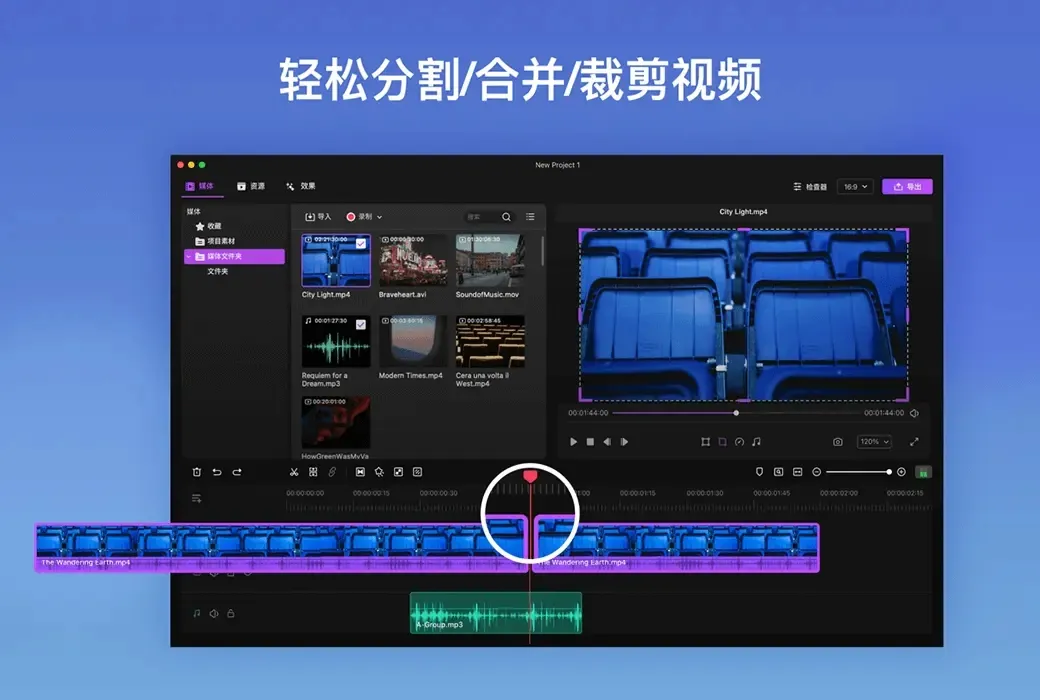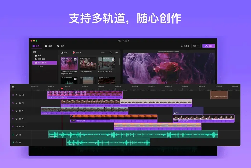 使用Filmage Editor进行视频编辑,你可以轻松使用所有高级功能,创作出色的视频。Filmage Editor视频编辑简化操作复杂的专业功能,使每个人都可以快速剪辑视频。即便你从来没有接触过视频剪辑,也能在几分钟之内创建项目、编辑并导出视频!