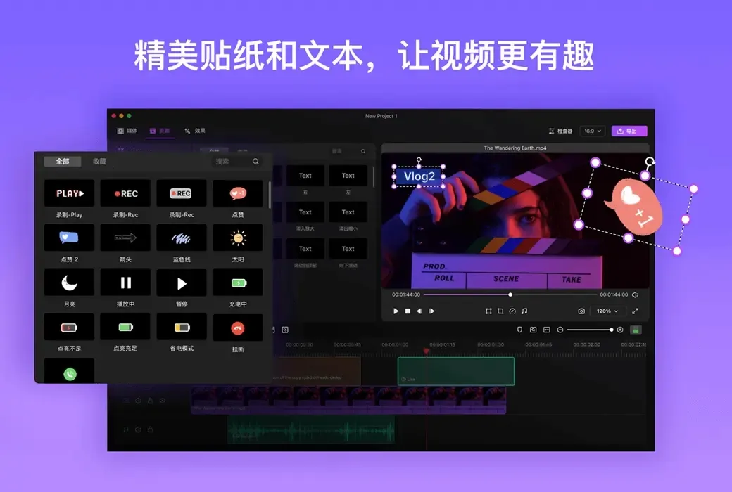 - 内置130 多个贴纸(快速更新中),可以直接在视频中添加标记、形状、表情符号等。