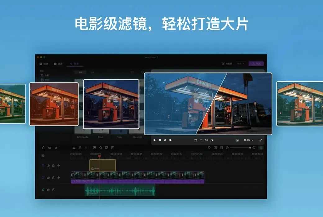 - 使用 60 多种滤镜制作令人惊叹的电影级作品。
