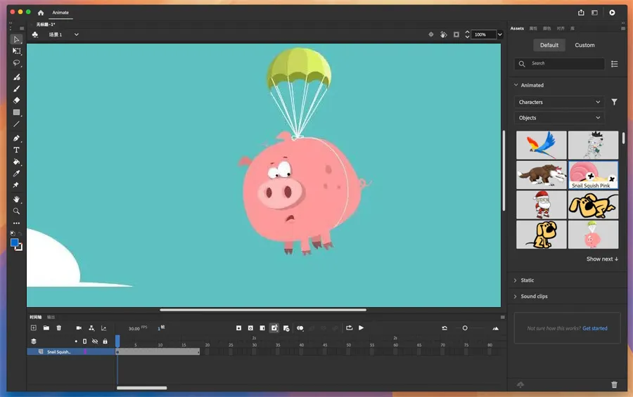 提供直观的时间轴界面,用户可以通过关键帧、运动路径和补间动画快速制作复杂的动态效果。 - 角色动画支持