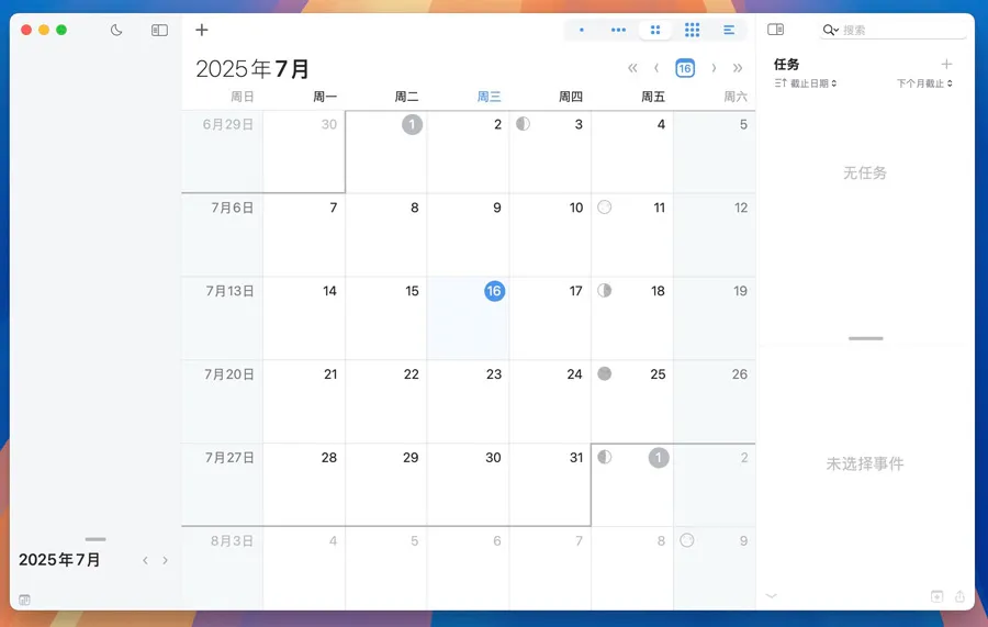 任务与日历融合:任务(To‑dos)嵌入日历显示,支持优先级排序,并与 macOS 自带提醒事项同步;