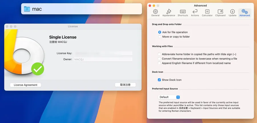 LaunchBar会自动学习用户的使用模式,优化搜索结果排序,也支持自定义索引内容与路径。 -
