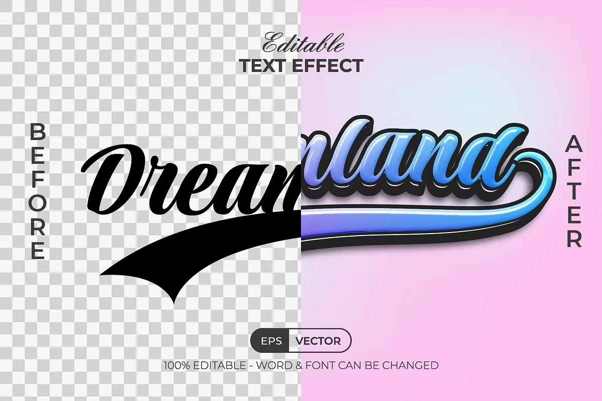 梦境文字效果多彩风格。此项目是一组 Adobe Illustrator 文本效果,可在图形样式菜单中使用。因此,您可以用文本或形状替换,然后在图形样式菜单中使用此效果。易于使用和编辑。