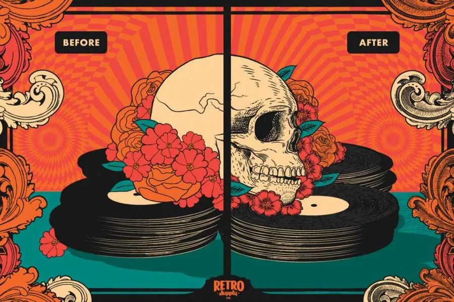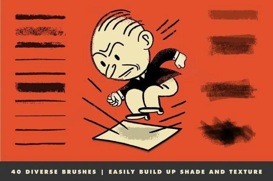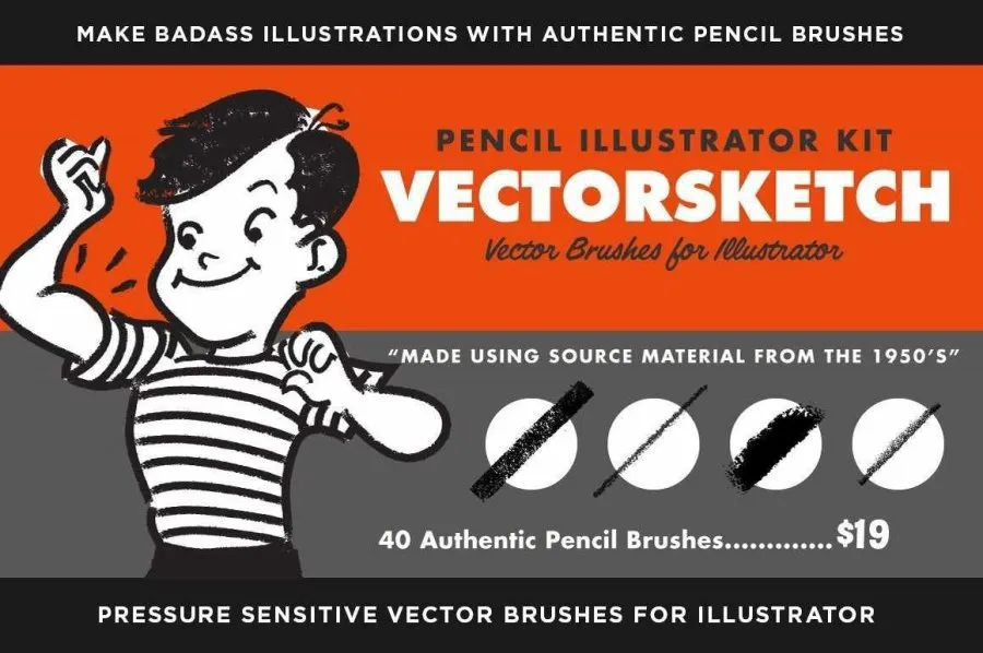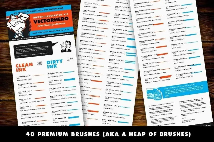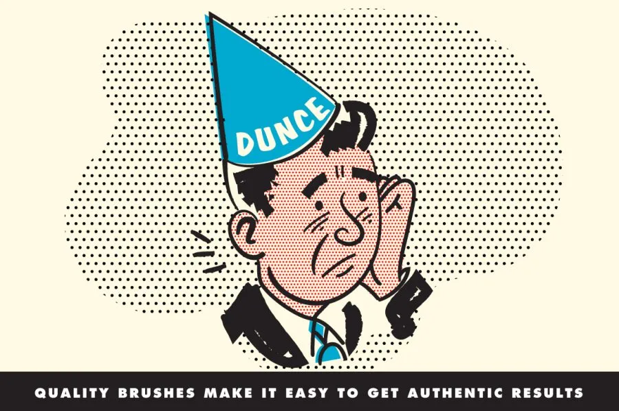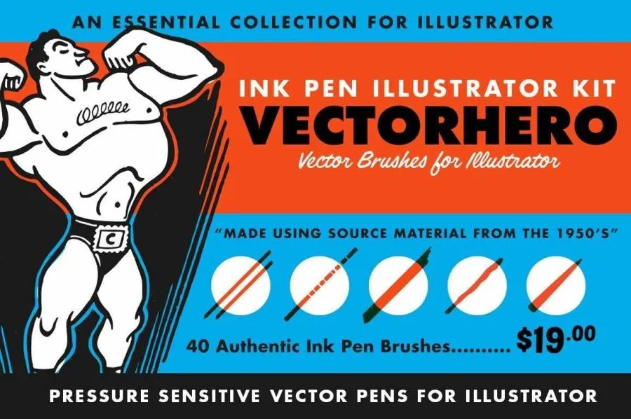 40支复古50年代插画绘画风格压感墨水画笔瑕疵笔触Illustrator画笔 Retro Supply – VectorHero