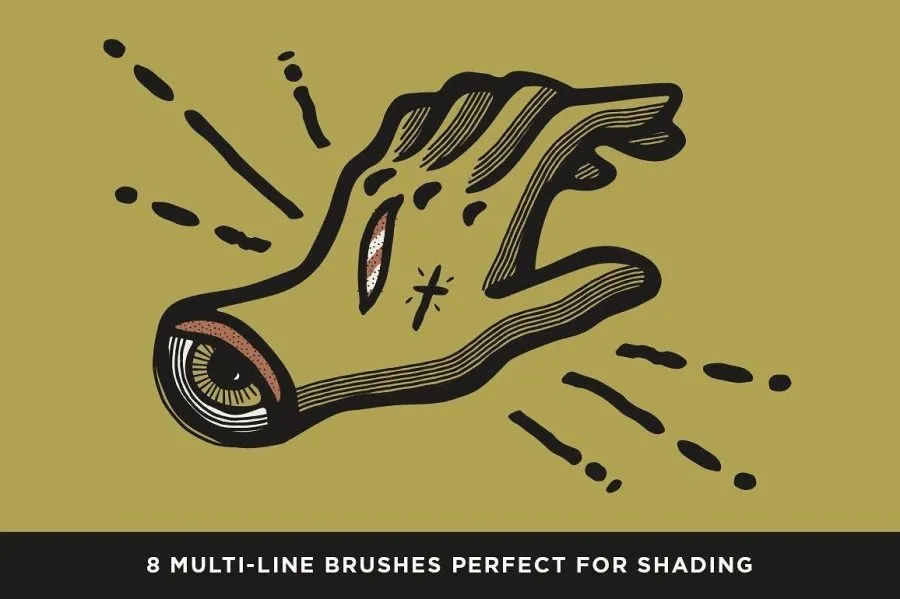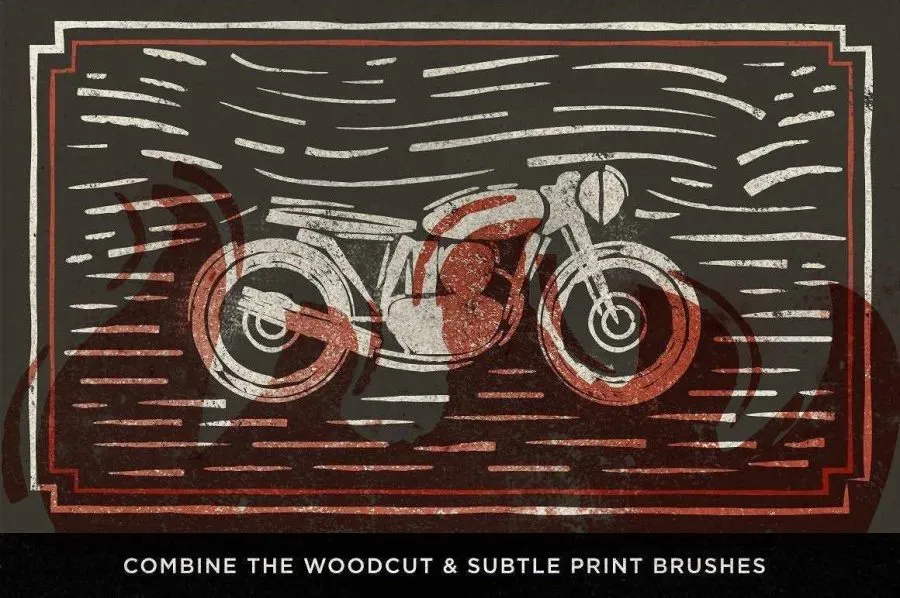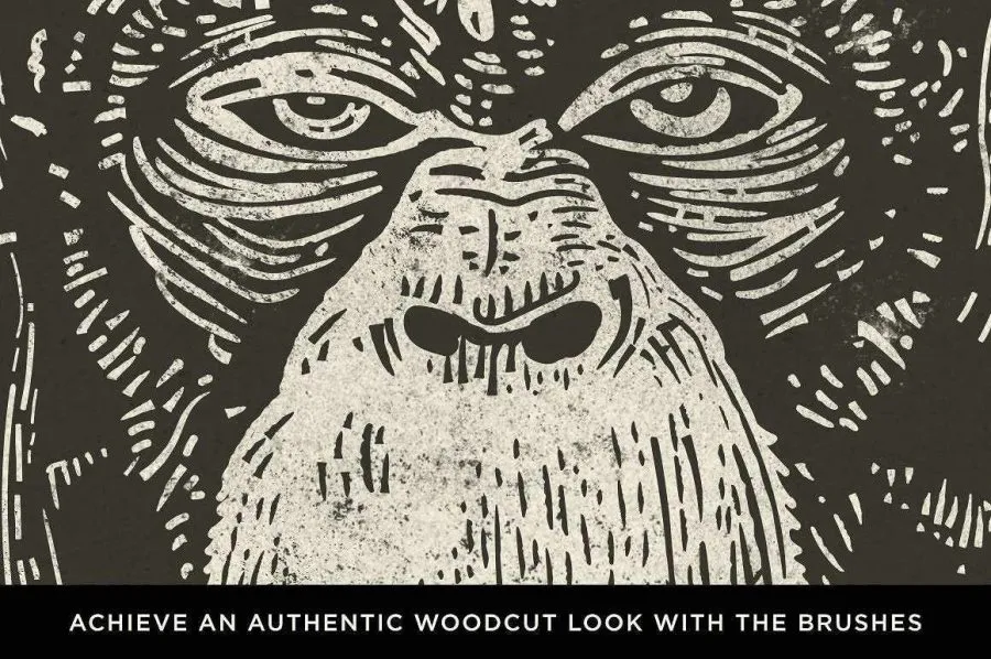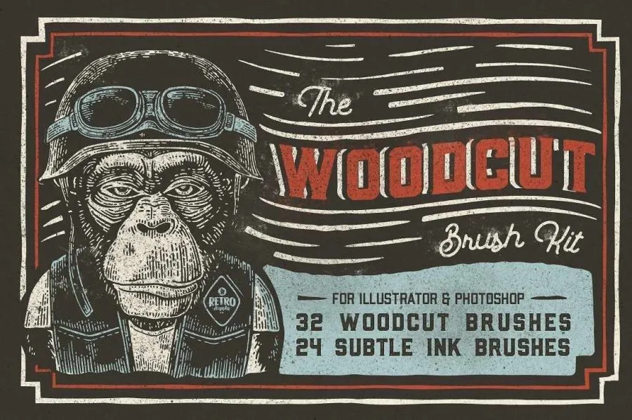 32+24支逼真的木刻浮雕版画效果Illustrator 笔刷和墨水画笔PS笔刷 Retro Supply – The Woodcut Brush Kit