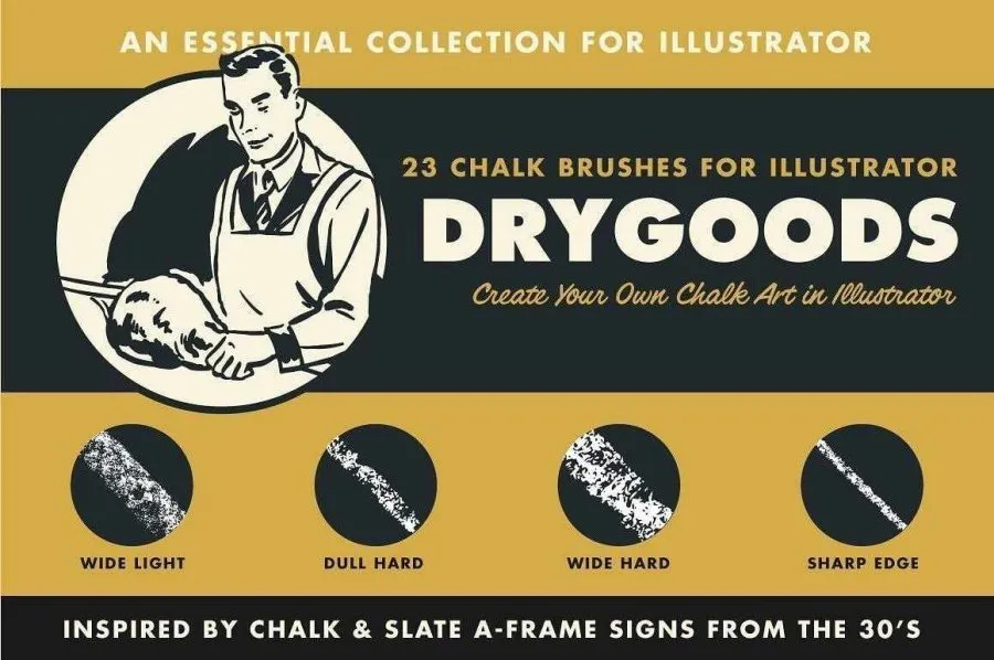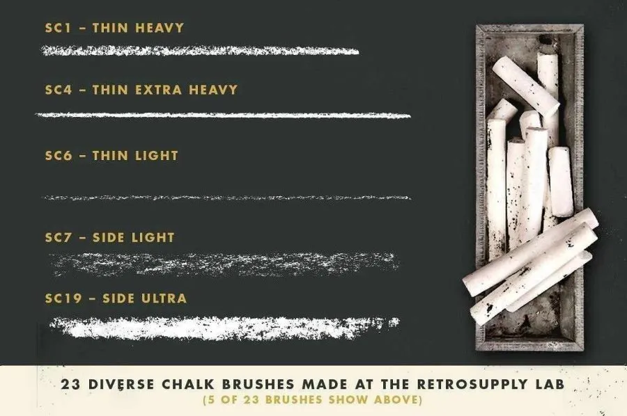 23支板画粉笔画笔触粉末颗粒纹理Illustrator绘画笔刷 Retro Supply – DryGoods