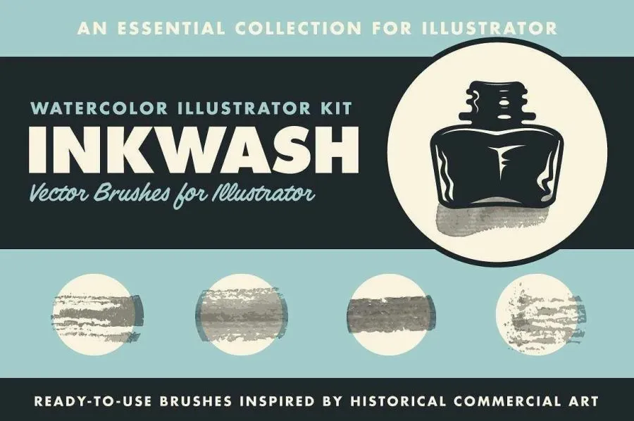 30种水墨笔触水彩画插画设计Illustrator矢量笔刷 Retro Supply – InkWash