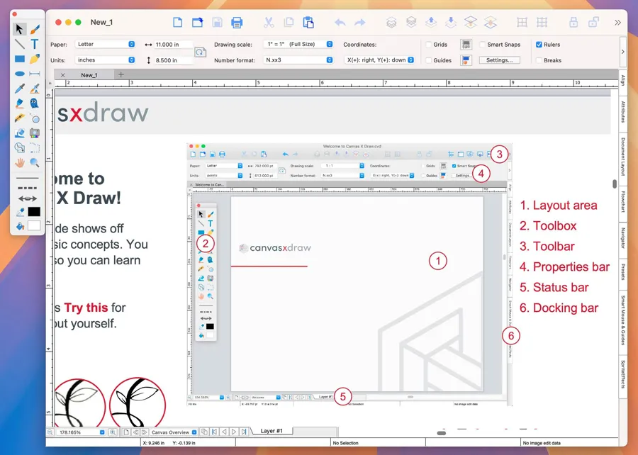 打开 Canvas X Draw,你会发现操作界面直观、工具栏响应迅速。无论是编辑矢量图形、处理高分辨照片,还是插入 CAD 模型,应用都能流畅应对。它采用动态浮动工具栏和内置提示系统,帮助用户快速上手。多页面和图层管理功能适合复杂文档处理。尽管界面功能丰富,但运行效率高,兼顾实时反馈与精度,整体使用体验贴近 macOS 原生风格。