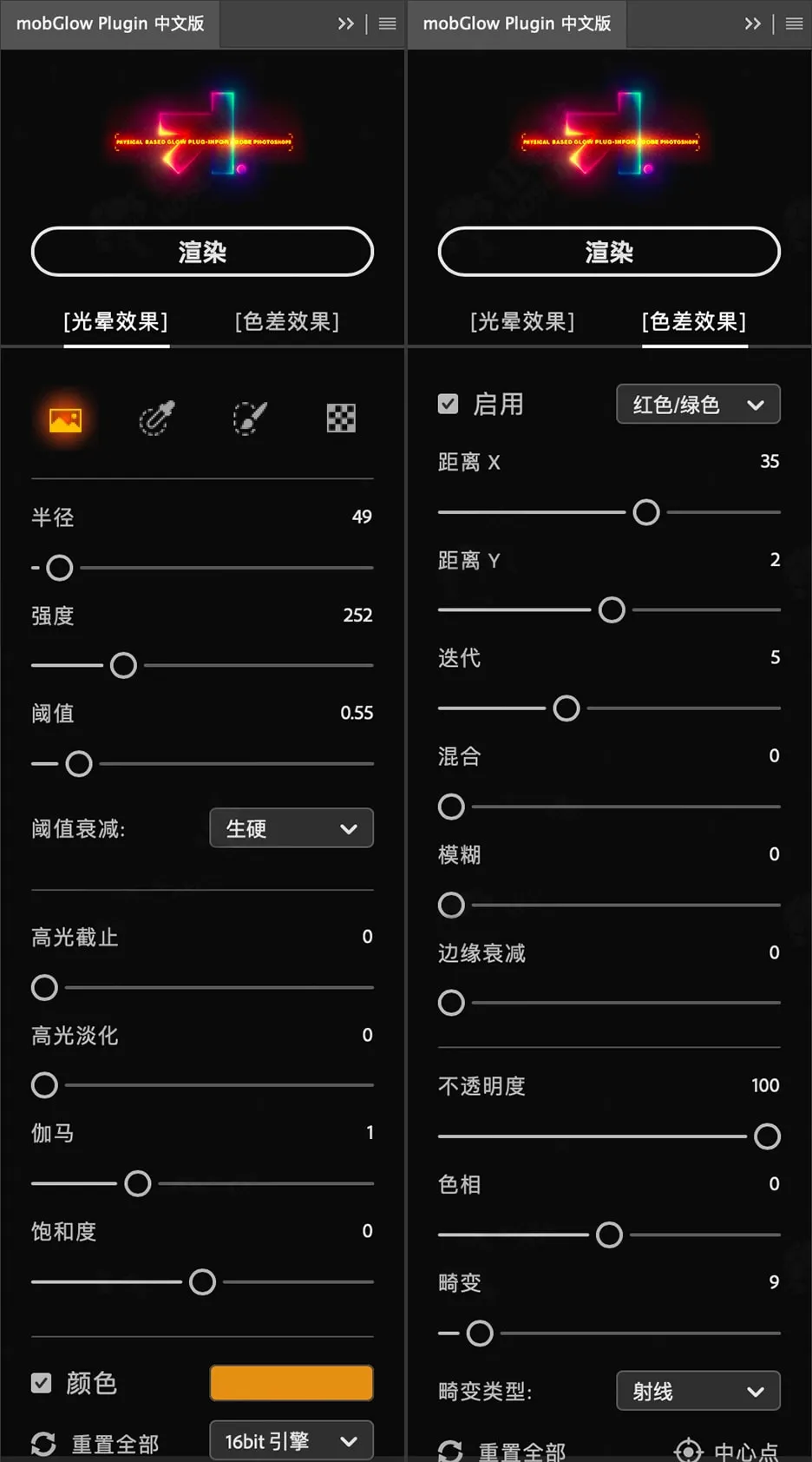 - 该插件支持 32 位模式,提供超平滑的 HDR 辉光。