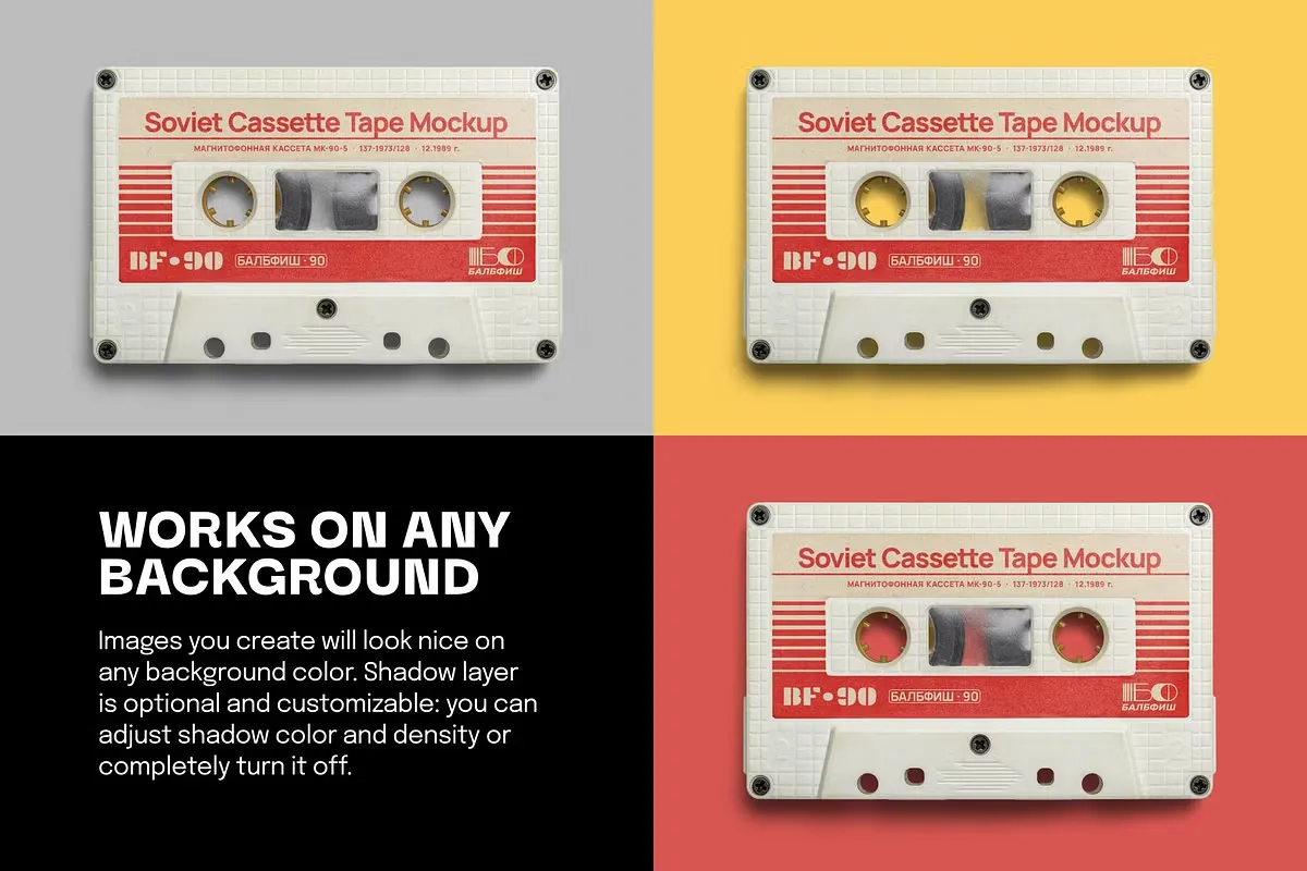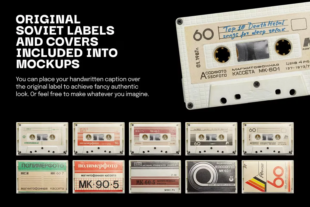 复古80年代苏式磁带卡带录音带包装设计PS贴图样机 Soviet Cassette Tape Mockup