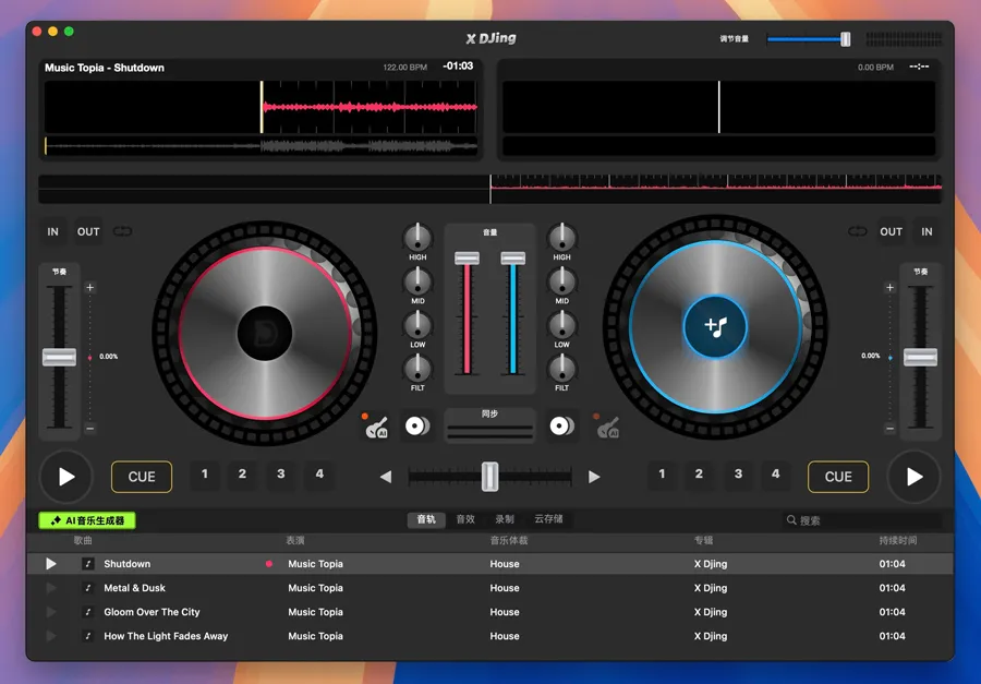 专业 DJ 工具:提供完整的混音功能和操作逻辑,满足从入门到专业级的 DJ 使用需求。