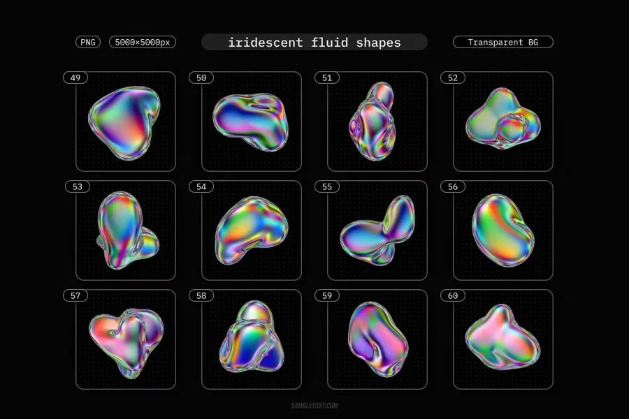 准备好感受灵感吧!我们很高兴为您带来The Iridescent Fluid 3D Shapes,这是一组充满活力的抽象元素,将以前所未有的方式为您的设计注入活力。
